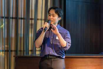 次のアジェンダでは、昨年10月にシニアコンサルタントへ昇格した社員のうち2名が登壇し、コンサルティングという仕事のやりがいや、コンサルタント時代の過ごし方、後輩たちへのアドバイスなどを話しました。シニアコンサルタントになるまでには複数の案件で経験を積むことが多いため、自身の実力や現在地を正しく把握するための振り返り方や、反省点の次への生かし方について、自らの経験を基にさまざまな考えを聞くことができました。